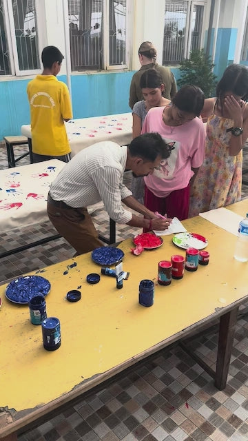 This incredible artwork is one of four in existence. Created by the children under the care of The Nepal Initiative in their hostel in Kathmandu, it serves as a permanent reminder of the charity's work replacing fear with freedom and vulnerability with possibility.